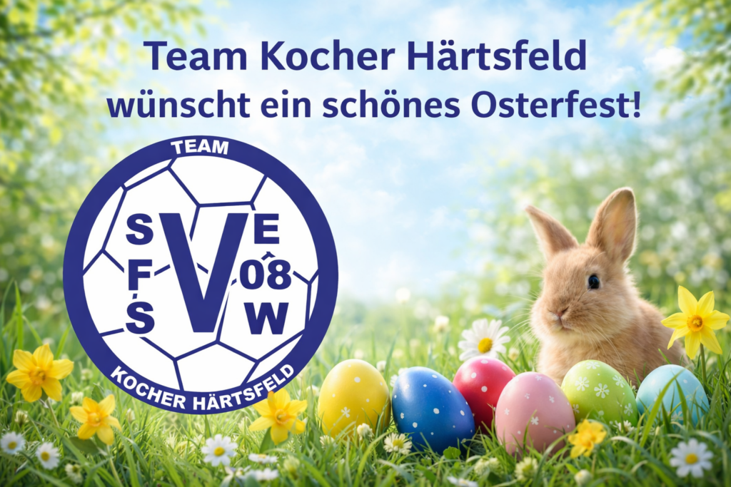 Mit frühlingshaften Grüßen und den ersten warmen Sonnenstrahlen des Jahres meldet sich das Team Kocher Härtsfeld bei allen Mitgliedern, Fans und Unterstützern. Wir möchten die Gelegenheit nutzen, um ein frohes und erholsames Osterfest zu wünschen. Ostern steht für Neubeginn, Gemeinschaft und positive Energie – Werte, die auch unseren Verein auszeichnen. Während auf und neben dem Platz weiterhin mit Leidenschaft trainiert und gespielt wird, hoffen wir, dass alle die Feiertage nutzen können, um Zeit mit Familie und Freunden zu verbringen, Kraft zu tanken und die schöne Frühlingszeit zu genießen. Ein besonderer Dank gilt allen, die unseren Verein unterstützen – sei es auf dem Spielfeld, am Spielfeldrand oder im Hintergrund. Ohne euch wäre Teamgeist nicht das, was er bei uns ist. Wir freuen uns auf eine weiterhin erfolgreiche gemeinsame Zeit und viele spannende Momente in der laufenden Saison. Frohe Ostern wünschtTeam Kocher Härtsfeld 🐰⚽