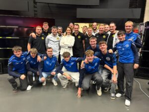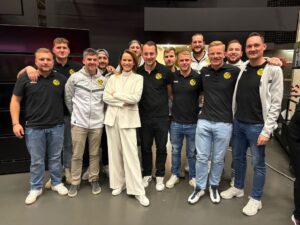 Spieler der Aktiven Mannschaft des SV Ebnat und Spieler seiner A-Jugend SGM FV08 Unterkochen Team Kocher Härtsfeld, deren Trainer er ist, überraschten ihn vor dem ZDF Studio in Mainz.