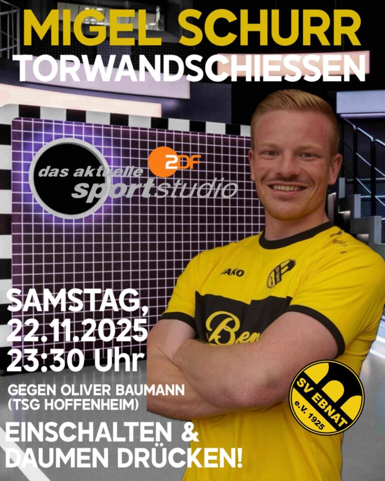 Aalen-Ebnat. Für die meisten Amateurfußballer bleibt das Torwandschießen im Aktuellen Sportstudio ein unerreichbarer Fernsehmoment, eine Mischung aus Kult, Mythos und Kindheitstraum. Für Migel Schurr vom B-Ligisten SV Ebnat wird dieser Traum am 22. November plötzlich Wirklichkeit – völlig überraschend, ohne Bewerbung, ohne große Ambitionen. Und genau deshalb fühlt es sich für ihn so besonders an.
